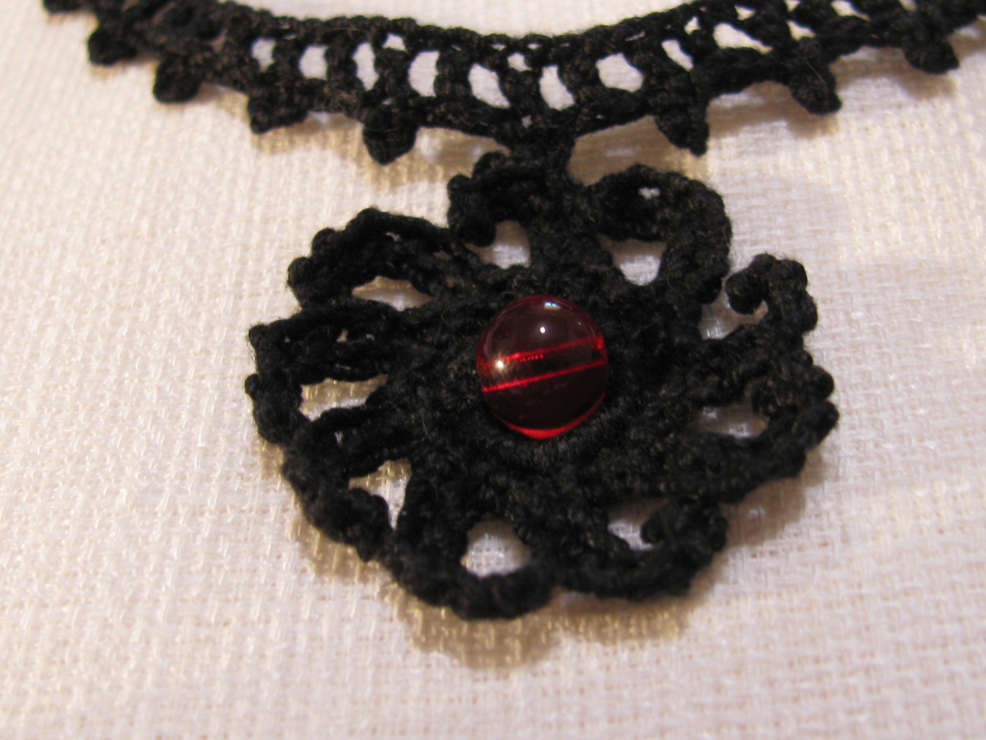 Modified Railroad Choker with Red Czech Glass Sun Motif